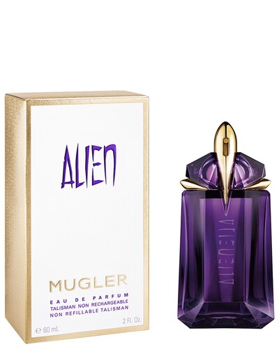 Alien is een lichtgevende creatie die de glans en pracht van elke vrouw onthult. Het is een parfum voor stralende, mysterieuze en buitengewone vrouwen. Het parfumflesje met dit elixer doet denken aan een heilige steen, amethist, die symbool staat voor meditatie en rust. Als een juweel geven de facetten ervan uitdrukking aan de uitstraling van het mysterieuze parfum MUGLER.